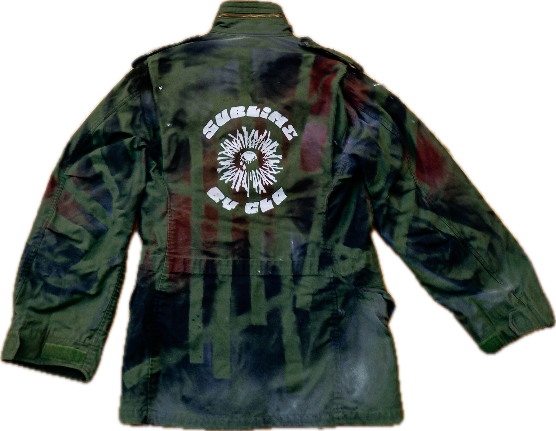 Extra Small Heavyweight upcycled military parka, Hand-sprayed. The back is crowned with the “SUBLIME by CLo”. Upcycled military garment